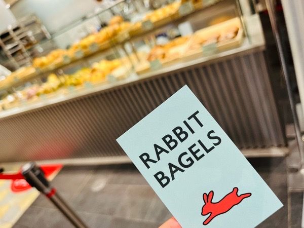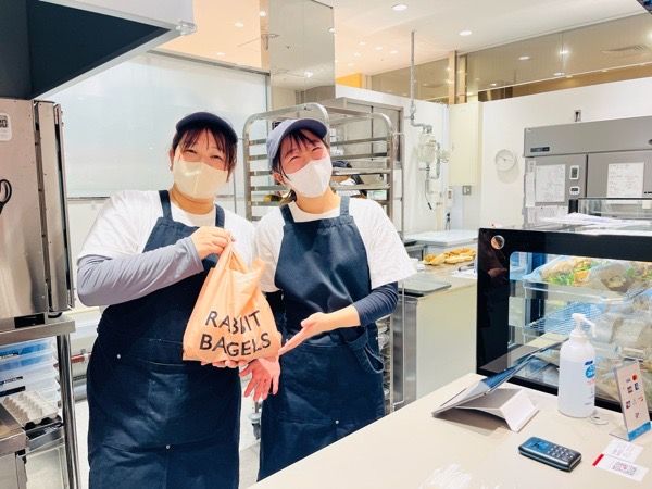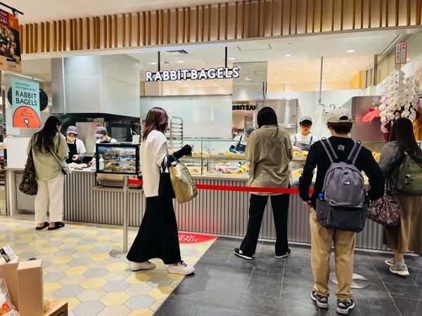 さて、まず伺ったのは、美味しさと安心安全な品質にこだわる京都発祥のベーグル専門店『RABBIT BAGLES』。マイングの1Fインフォメーションからすぐ近くの場所にありました。