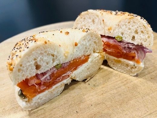 ケッパーや紫オニオンの彩も食欲をそそられます。たっぷりのスモークサーモンにクリームチーズがからみ、思わずこぼれる「美味ッしっっ!!」という声。具材とベーグルのバランスが絶妙で、食べやすさも考えられているのか具材たっぷりなのにこぼれにくい。子どもにも喜ばれるサンドです。