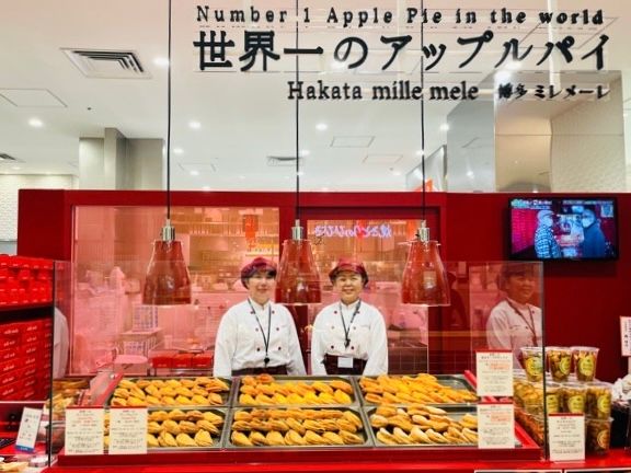 続いてお邪魔したのは、本店が鎌倉にあるというアップルパイのお店『博多 mille mele』。店名よりも大きな「世界一のアップルパイ」というロゴを見てしまっては、アップルパイ大好き人間としては絶対に素通り出来ない場所です(笑)