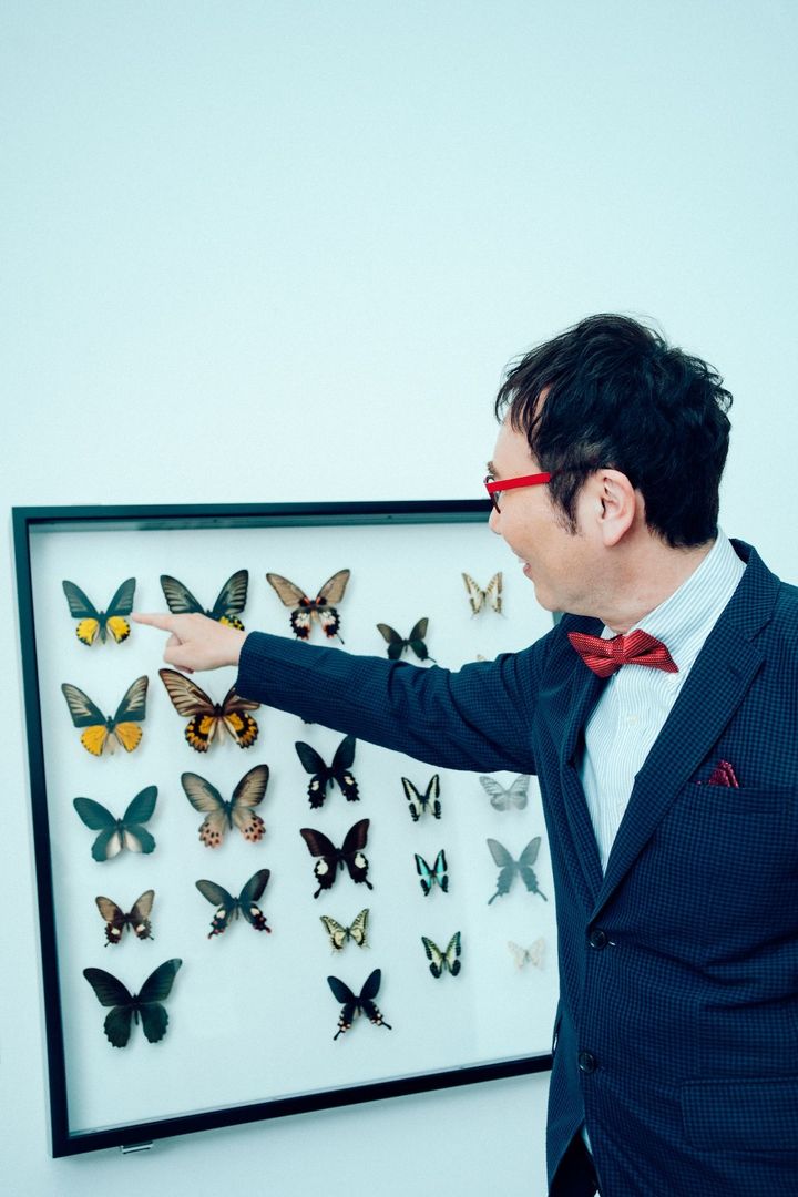 私もどちらかというと内向的な少年で、学校での周囲からの同調圧力から逃れたくて、昆虫の世界に癒しを求めました。蝶の幼虫がさなぎになり、成虫へと羽化していく自然の精妙なさまに触れて、「繊細な自我を守った」という気持ちが私にはよくわかります。虫を通して世界に出会うと、基本的な生命観が決まってしまうんですよね。今回の展示では手塚先生の蝶のデッサンと、私が先生のデッサンを元に集めた標本コレクションを展示しています。