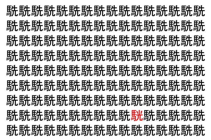 2. 【脳トレ】「駪」の中に紛れて1つ違う文字がある!?あなたは何秒で探し出せるかな??【違う文字を探せ!】