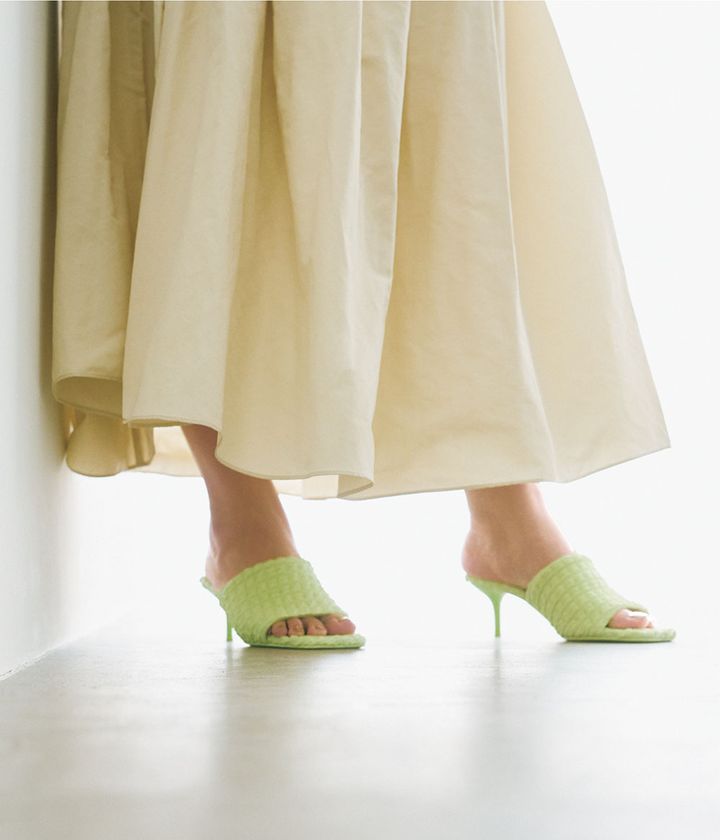 お気に入りの靴ブランドは遊び心のあるカラーで服をワントーンにして足元を主役に。自分の中で自信が持てる足首はよりキレイに魅せたい。(野呂さん)