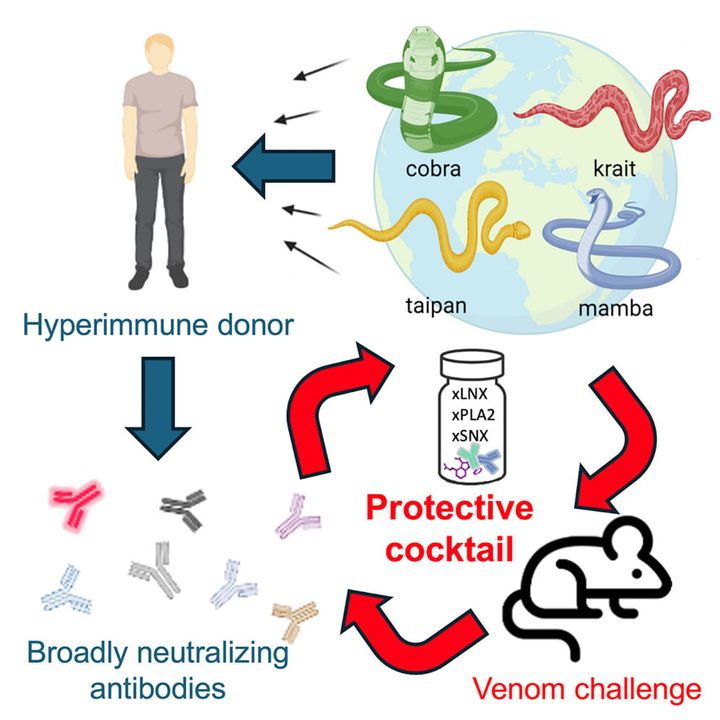 13種類の猛毒に対して100%、6種類の猛毒に対して部分的な防御効果を与える抗毒素が誕生 / Credit:Jacob Glanville(Centivax)et al., Cell(2025)