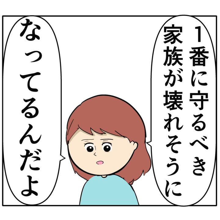 「1番に守るべき家族が壊れそうになってるんだよ」めいさんは、家族が大切だと言いながらジュリ実さんに無責任な優しさを出したろみ緒さんのせいで家族が壊れそうになっている、と強く言いました。