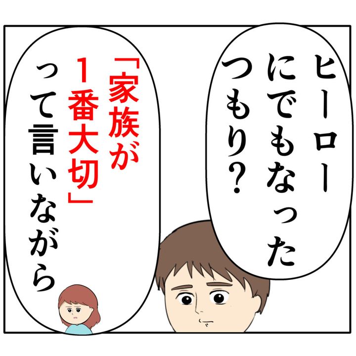 めいさんはさらにろみ緒さんを責め続けます。「ヒーローにでもなったつもり?『家族が1番大切』って言いながら」