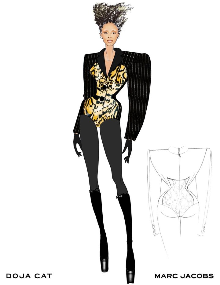 一見するとオセロット柄は今夜のテーマと直結しないようにも思えるが、ドージャ・キャットにとっては個人的な意味があり、「Tailored for You(=あなただけの仕立て)」というドレスコードを体現していると言えそうだ。「自分にとって特別な柄というのがいくつかあって、それを大事にしています」と彼女は話す。「スーツをパーソナライズすることは、テーマにおいても、どう取り組むかという点でも、すごく大切なポイントだと思います」。