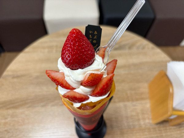 クレープ生地もほどよい甘さで、いちごと全体の美味しさを引き立てていました。