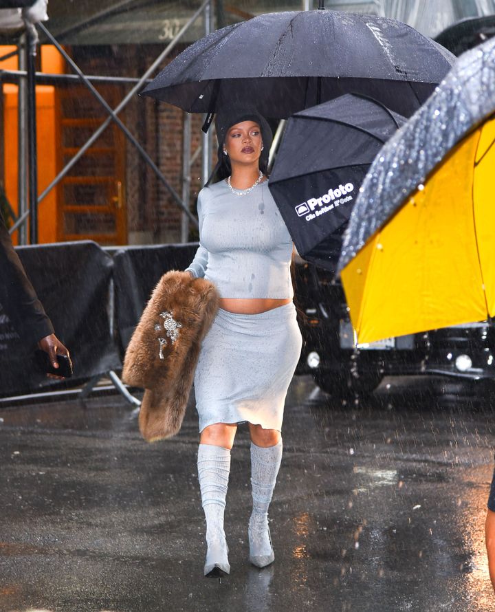 リアーナはメットガラ2025当日、カーライルホテルを後にする際、ふくらんだお腹を見せ、第3子を妊娠していることを公表し話題を呼んだ。