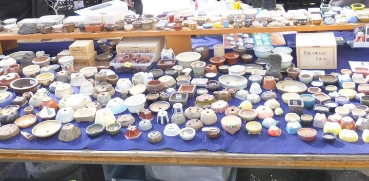 そして盆栽大野さんに所せましと並んでいるのが、小さな豆盆栽鉢。手のひらに7~8個ものるのではないか、という小ささ。鉢を探す楽しさもたまりません。
