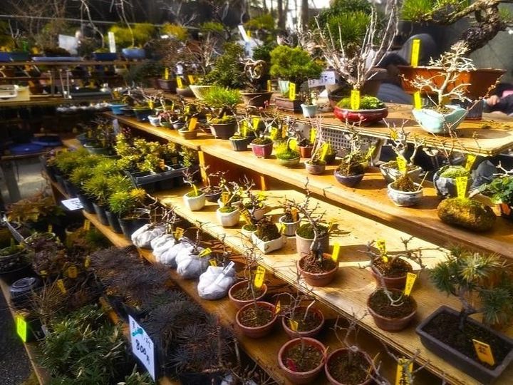 さてそんな植物をayumittさんと一緒に探しに行ってきました。訪ねたのは東京・上野にある上野グリーンクラブ。日本盆栽協同組合の本部で、常設展もあり、かわいい植物を探せます。そしてたまたま開催されていた盆栽展に出店されていた、盆栽大野さんという盆栽のお店を訪ねました。小さめの盆栽の間に、葉っぱや花が咲いた小さな植物も見つかります。