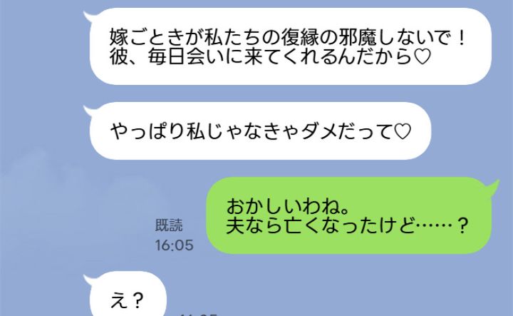 「あなたの夫、毎日会いに来てくれてるの♡」前妻から謎連絡。私「彼、亡くなったけど?」決定的矛盾を突き付けた結果