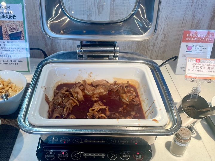 香ばしく焼き上げた豚肉と、秘伝のタレが絡んだ豚丼は、ビュッフェながら驚くほど本格的。