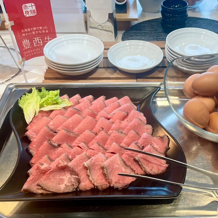 朝食ビュッフェで目を引く一品が、十勝・北海道産銘柄牛を使用した『ローストビーフ』