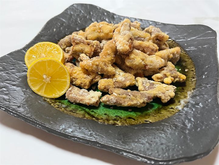 『まかないチャレンジ!』の大将おすすめ、「モツの唐揚げ」が完成しました。