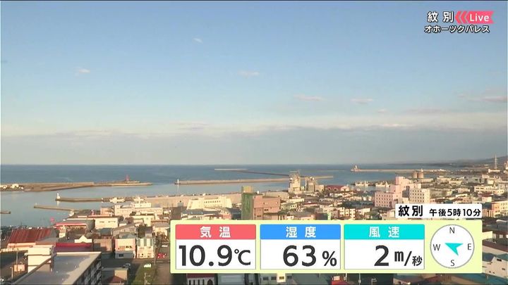 紋別では晴れてますね。ただ、この先も短い周期で天気が変わります。