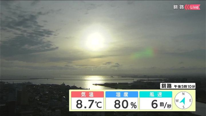 釧路はやわらかな日差しですね。これから雲が厚くなり、あす7日(水)の釧路は傘が必要です。