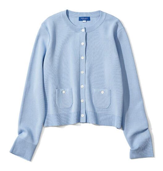 カーデには小さめポケット、ニットには裾に粋なワンポイントが。パステルカラーでトレンドを楽しんでみても◎。