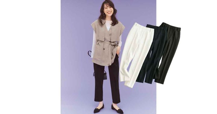 子どもの園・学校や習い事、そしてオフィスでも、「はじめまして」のシーンが多い季節。“親近感”と“きちんと感”のバランスが良いスリスクの服なら、慌ただしい朝も時短でオシャレが可能に。今回は、穿けば手放せなくなると話題のスリスクパンツをご紹介。黒・紺・白、どの色も活躍必至です。