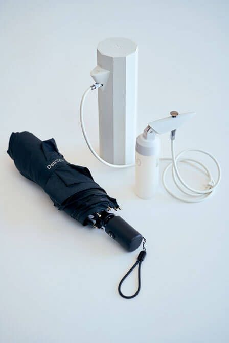 「MEGLYの炭酸ミストを常備して、顔に振りかけていつでも保湿しまくり。Delitooの折りたたみ傘は240gの超軽量で完全遮光なので重宝!」