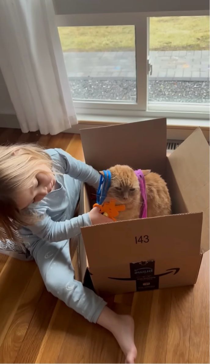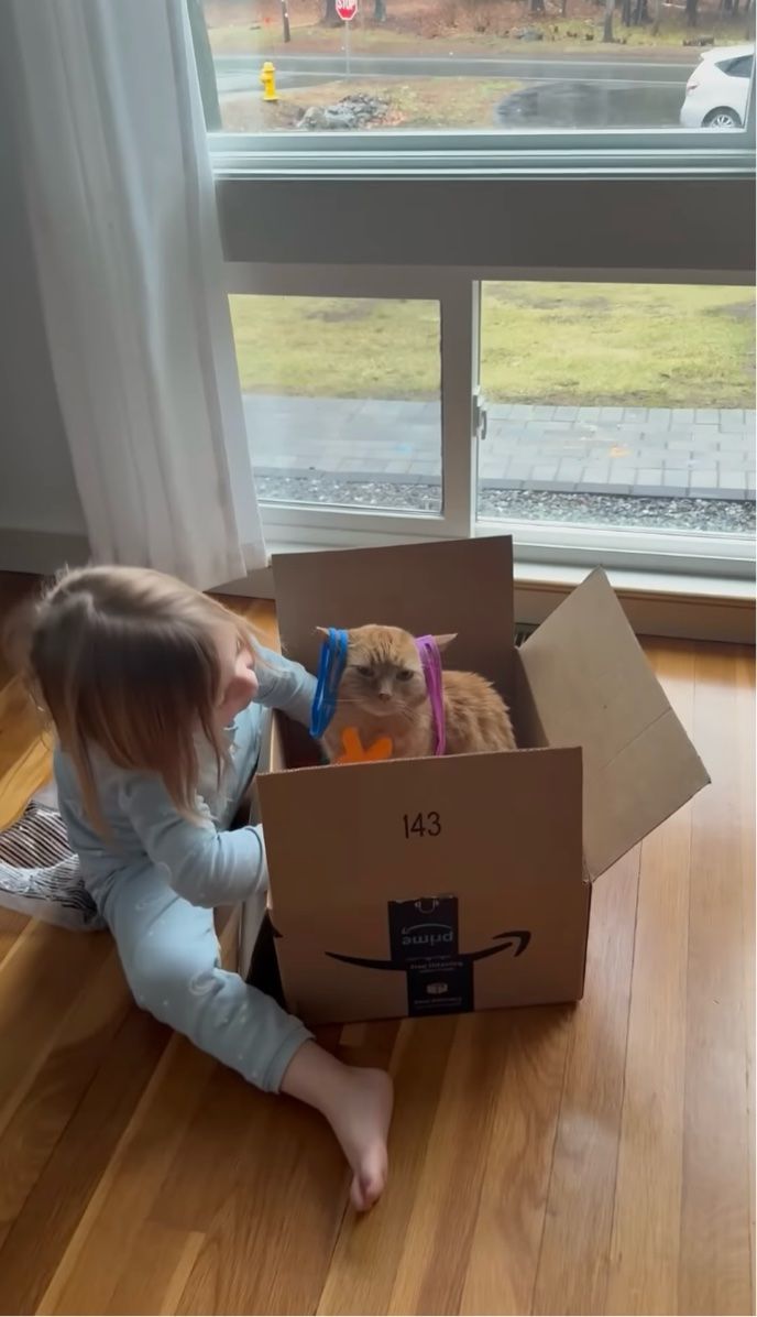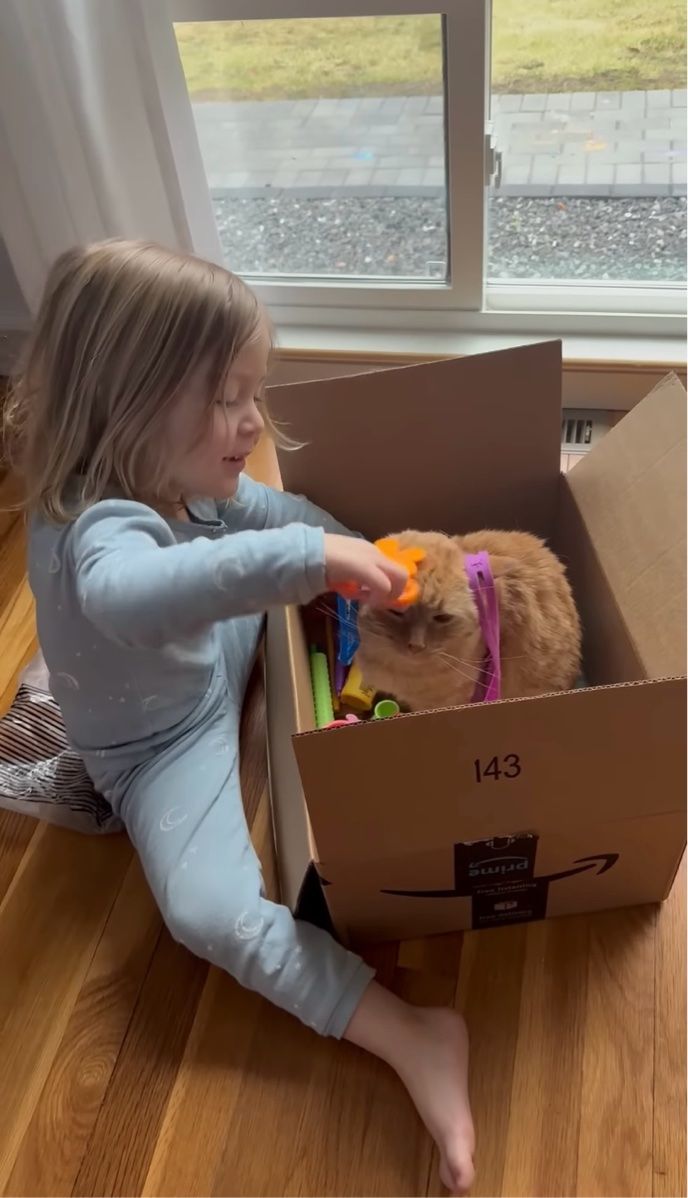 アメリカのとあるお宅で撮影されたこちらの動画には、女の子と愛猫が繰り広げる微笑ましい光景が収められていました。