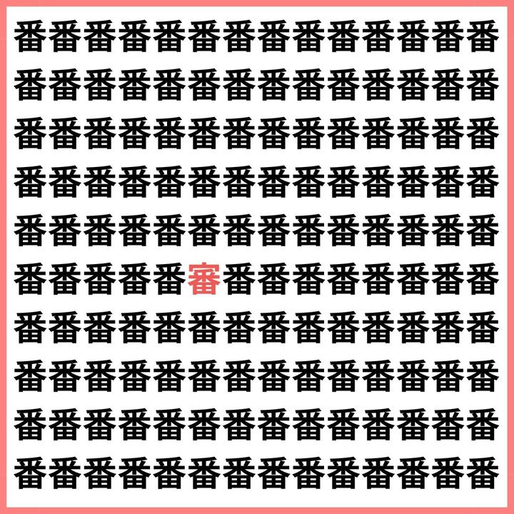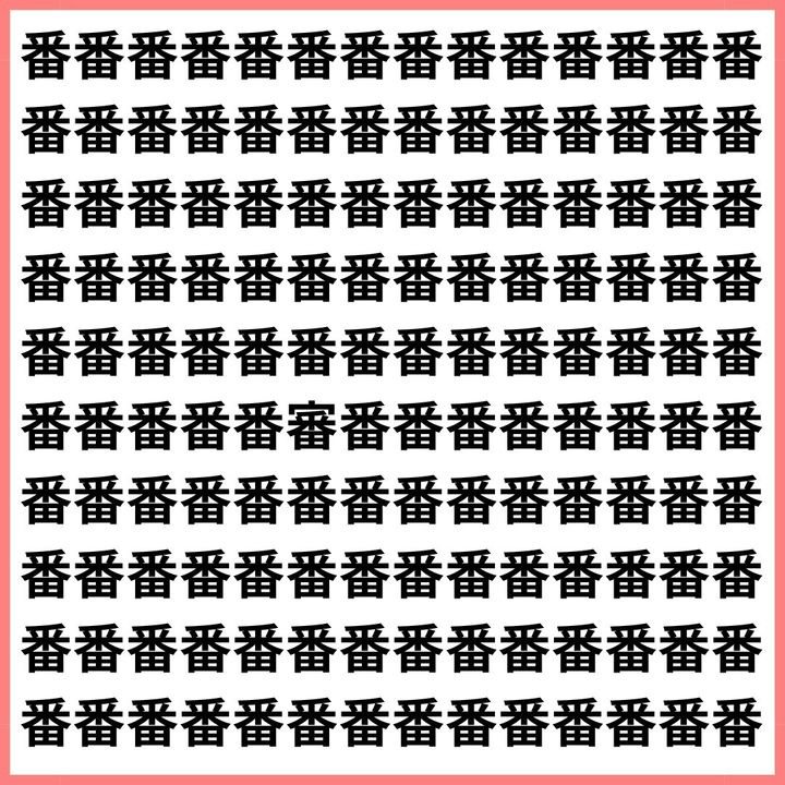 たくさんの「番」の中に、1文字だけ違う漢字が混ざっています。