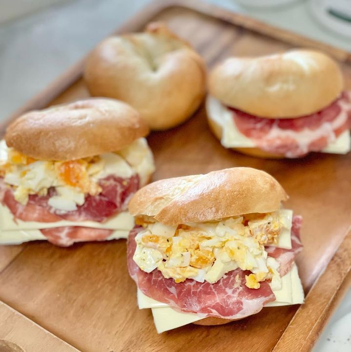 もちもちしたベーグルはそれだけでも満足感がありますが、好きな具材でベーグルサンドにするのもおすすめ。