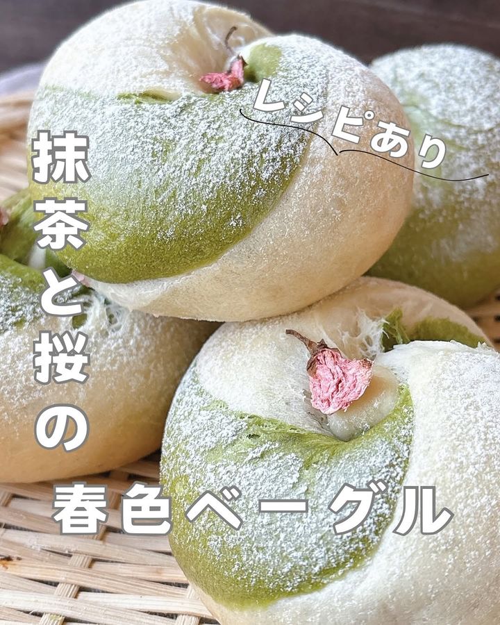 今回ご紹介するのは、「抹茶と桜の春色ベーグル」。