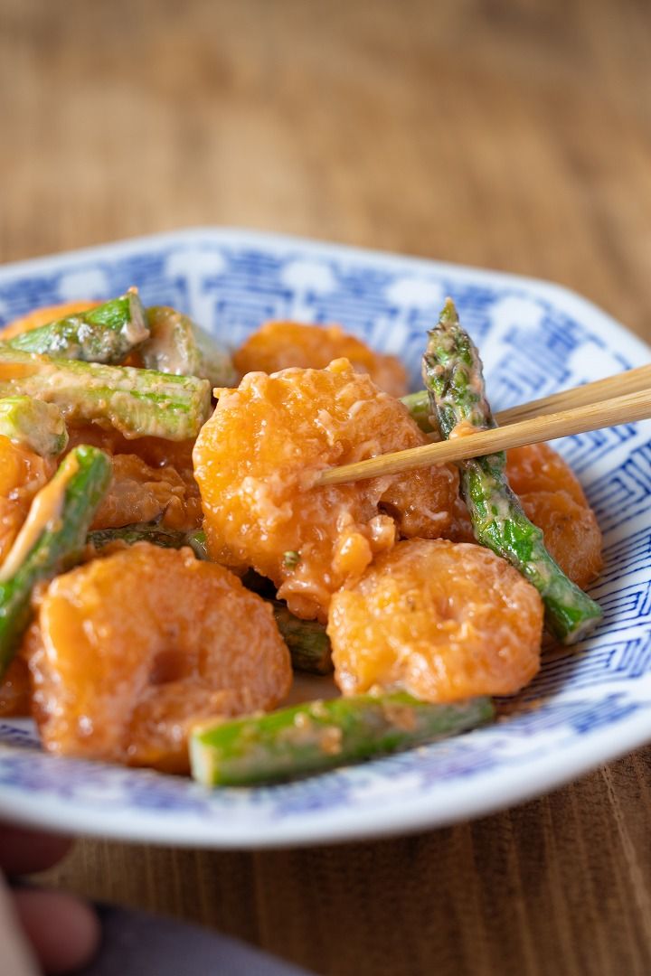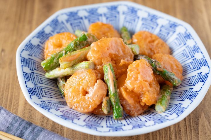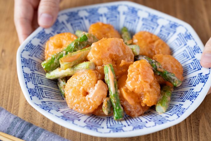 ぷりぷり食感が最高!料理初心者にも嬉しい簡単レシピ「アスパラガス入りエビマヨ」