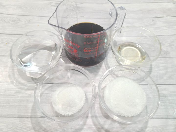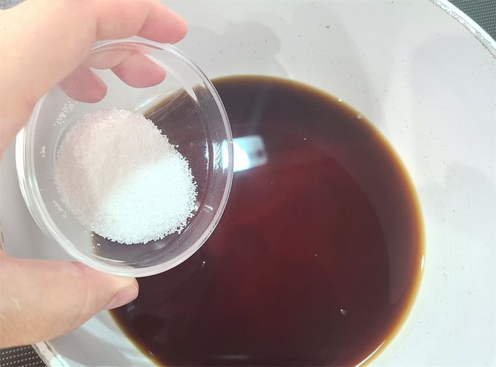 1. 鍋に水、しょうゆ、みりん、うま味調味料、塩を入れ、中火で熱し混ぜながら加熱します。