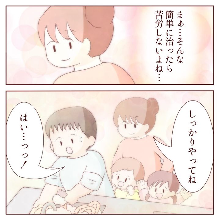 「これからは、自分のことは自分で、お願いされた事はちゃんとやる、私の子どもじゃないんだから。父親になりなよ、そろそろ」チエミさんがそう言うと、「ぼくお手伝いできるよー!」「クルミもー!」と子ども達が即座に言いました。