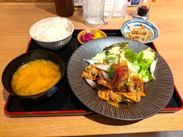 食欲をそそるいい匂い!スタミナのつく味付けと豚肉!これからの季節にぴったりの定食です。豚肉と玉ネギの相性もよく、栄養満点ですね。ご飯がすすむ豚焼肉ですね~。