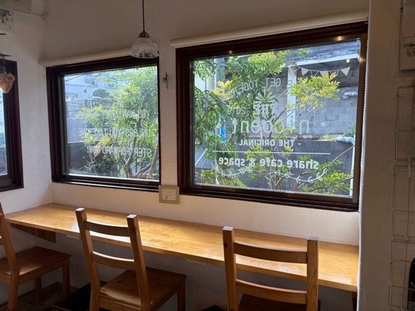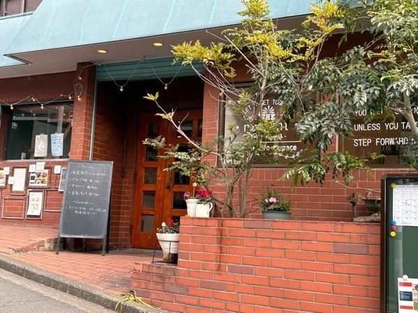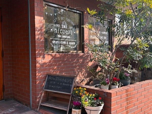 改札出て右の階段またはエレベーターで1階へ。お花屋さんを右手に直進。200mくらい行き、左に曲がり下る。橋を渡り、右方向へ上ると見えてくる。シェアカフェのニコエントに到着。