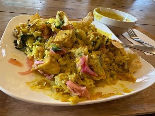 サクサクしてる。手でパパダムを割って混ぜて食べる。実際にはどんな食べ方でもいいよ。