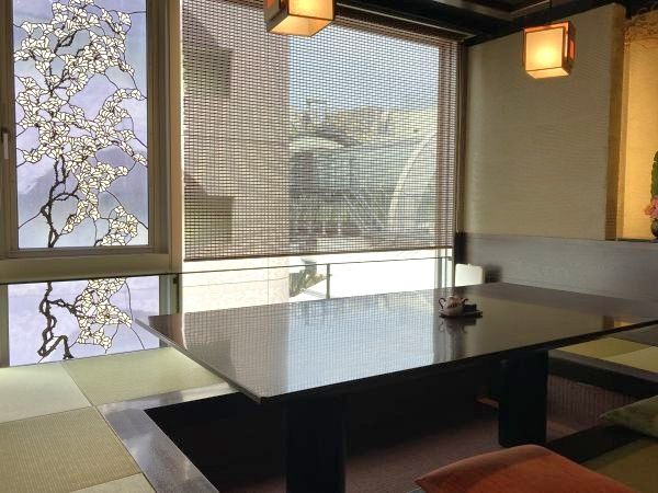 掘りごたつ式の個室もあります。店長さんのご友人の作家さんが作成した、ステンドグラス(たぶん木蓮の花)がとても素敵です。