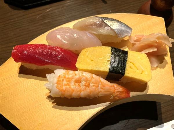 にぎりは光り物や白身、マグロ、蒸しえび、たまごの5種類で、ネタとシャリの一体感がさすが職人技という感じでどれも美味しい~。