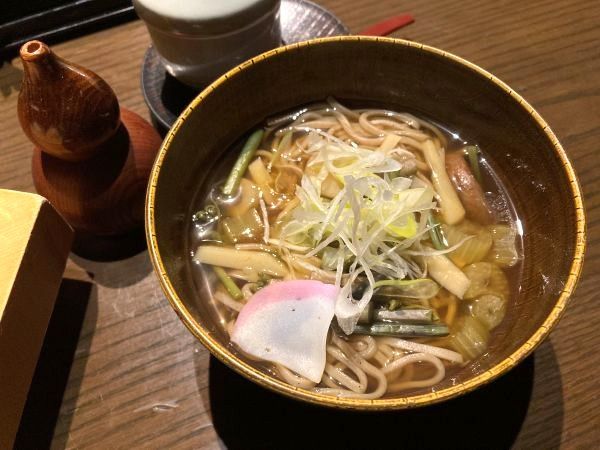 この日の麺は山菜そばで、甘めのつゆに山菜がたっぷりで結構ボリューミー。