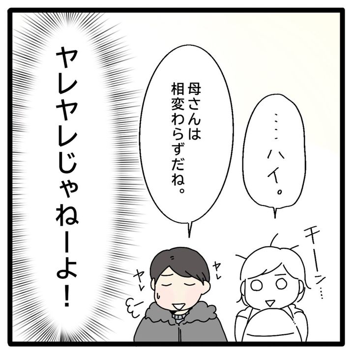 ヨシオがなんとか断ってくれないかと心の中で願っていると「ヤレヤレ・・母さんは相変わらずだね。」といった様子で既に諦めて義母の好きにさせる雰囲気に。ヤレヤレじゃねーよ!と心の中で叫びました。
