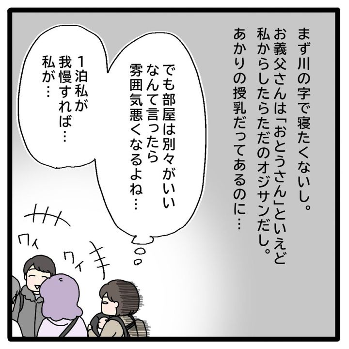 3. ランチ予定のはずが義理の両親と同室宿泊を強いられた嫁は授乳を考え憂鬱。自己中義母の迷惑サプライズ|ママ広場マンガ