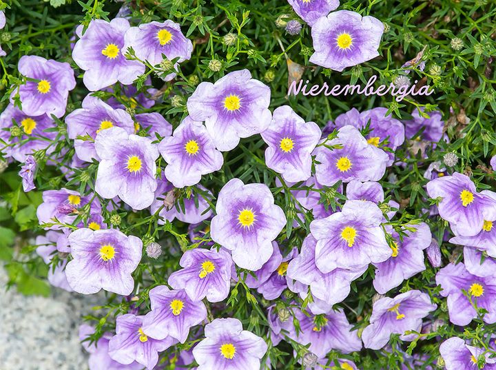 ニーレンベルギアの仲間は、ブラジルやアルゼンチン、コロンビアなどの南アメリカとメキシコに、約20種類が分布する多年草、または低木です。カップ状の花は、青色や紫、白色などの花色があり、中央に黄色い目が入ります。背が低くまとまった株姿で、花壇や寄せ植えの前面、ハンギングバスケットなどに最適です。