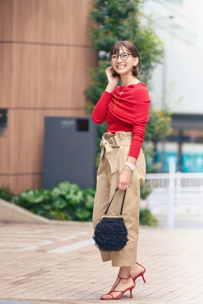 ビビッドな赤の華奢サンダルで短丈パンツを攻略