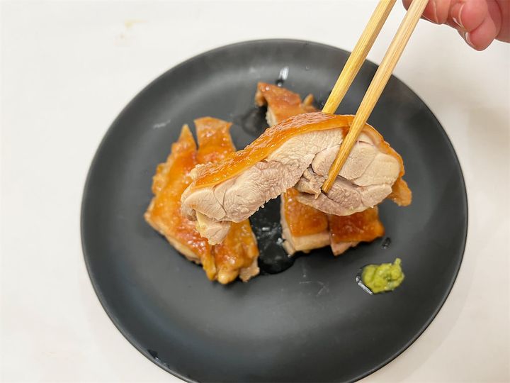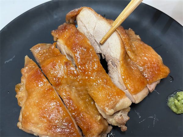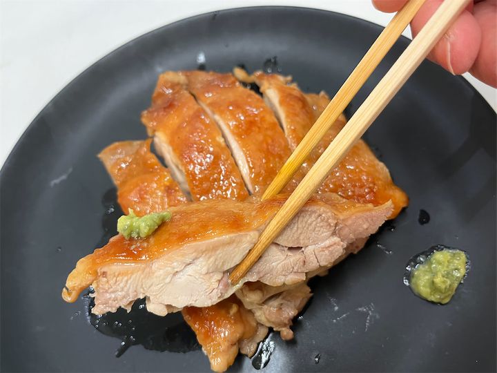 ふわっとジューシーでやわらかいお肉に、しょうゆの風味が絶妙に染み込んでいます!皮だけをしょうゆに漬けたおかげで、肉はしっとりジューシー、皮部分はしっかり味がついて香ばしいです♪