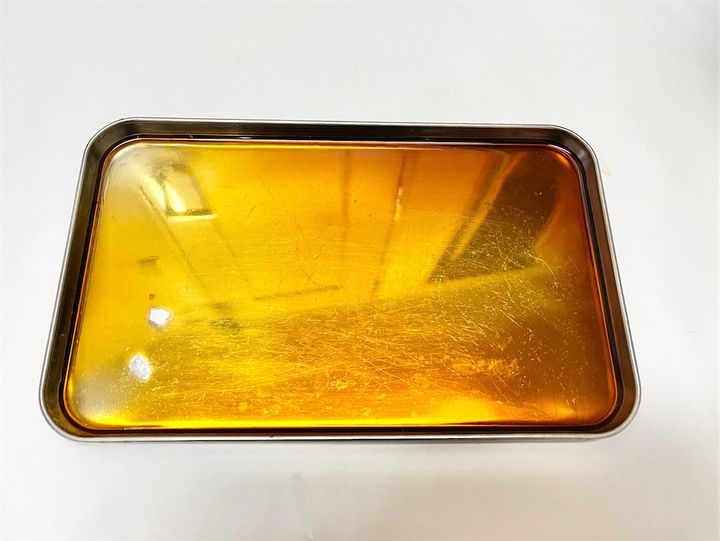 1. 鶏肉が1枚入る大きさのバットや平たい皿を用意し、しょうゆを薄く広げる。