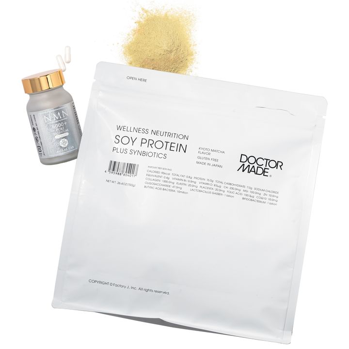 アミノ酸スコアの高い国内製造の大豆をベースに完全無添加処方。厳選素材で安全性にもフォーカス。ソイプロテイン 750g ¥16,200(DOCTOR MADE)