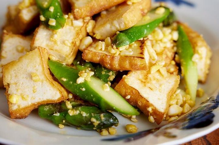 【ベジタリアン大国! 台湾の定番美味おかず】大豆加工品と春の野菜「厚揚げの塩卵炒め」