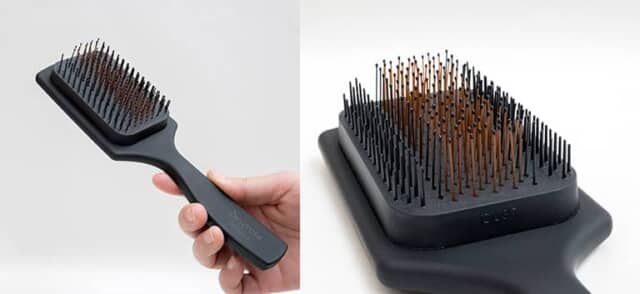 2層構造になったピンが135本配列し、外側は硬いピン、内側には柔軟な極細ピンが並びます。先端の丸い部分が頭皮を心地よくマッサージする優れモノ。高密度でありながら摩擦や静電気を防ぎ、もつれや絡みも抑えます。カラーは上質な艶消しブラックを採用しています。