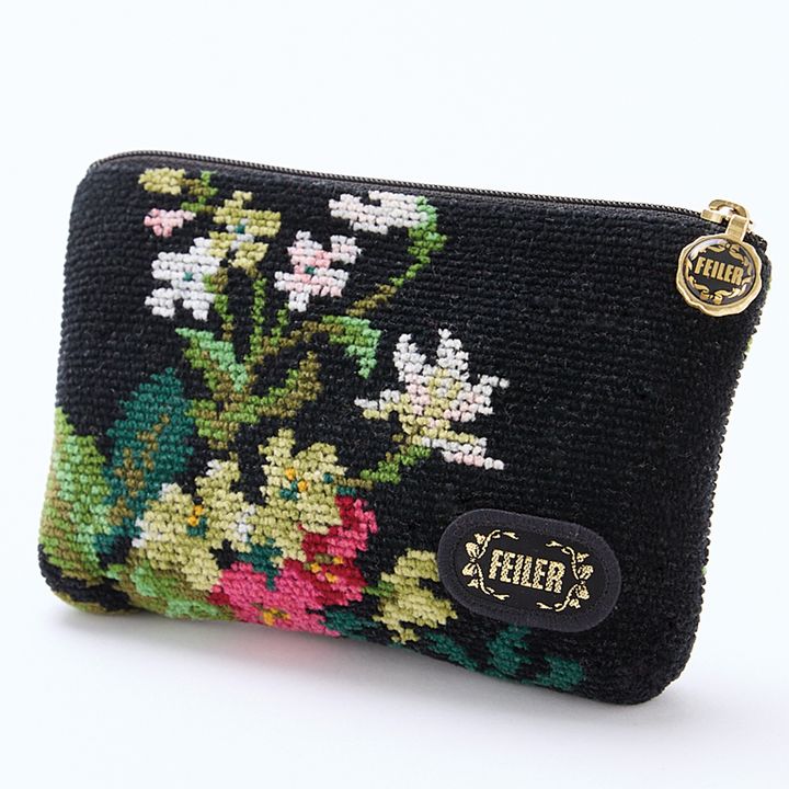 「黒地にピンクの花柄が甘すぎなくてお気に入りのタオル地ポーチ。コンパクトながら必要なものはしっかり入るから小さめバッグの日も安心」