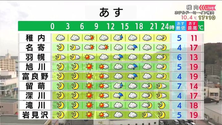 あす8日(木)の札幌です!朝昼晩の天気をもんすけでお伝えします!