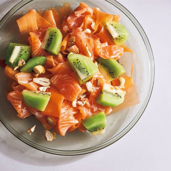 3. 美容に欠かせないビタミンがたっぷり♡見た目も華やかな【サーモンとキウイのキャロットサラダ】