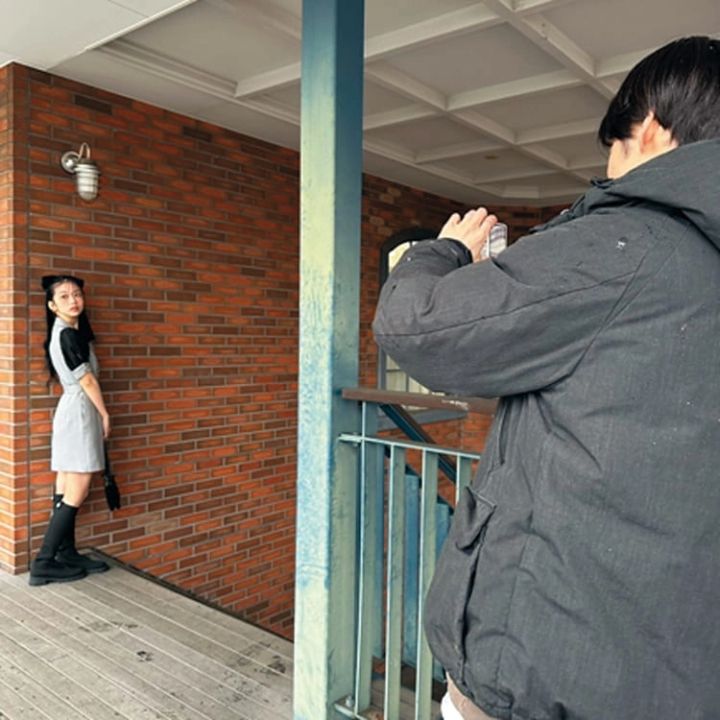 雰囲気を生かすには、世界観が出やすい色みや模様のある場所を選んで撮ってみて。