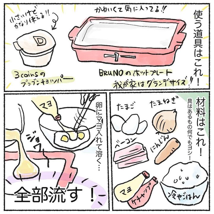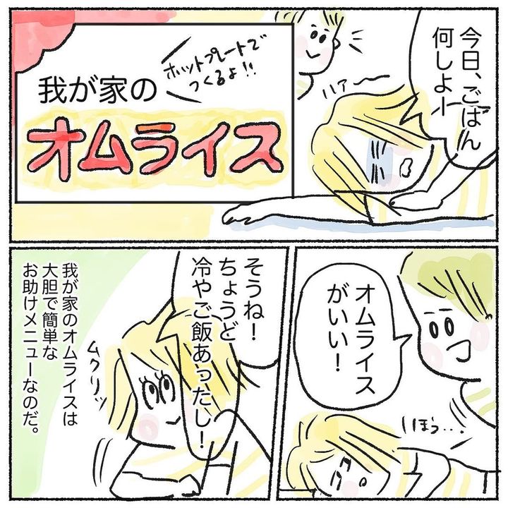 3. 【ホットプレート活用術】大胆な「オムライス」考えた!包まなくていい簡単お助けメニュー♪【Ayumiの漫画】